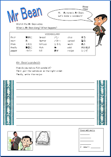 This week I'll talk you through an activity for, but not limited to, chapter 1 of New Crown (Juniour High) for third graders. It's ultimately a recipe (involving first, then, next and finally) which uses a video of one of Mr Bean's escapades.