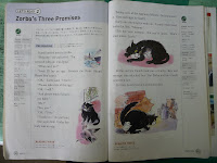 NC2 decided to teach grammatical structures for "going away" and the ever important "full of" through the medium of a bad Three Stooges remake. Perhaps I should apply for a job. I'm full of ideas. How about a Chuckle Brothers remake for first graders? We can laugh at the frantic spazzy flailing of total morons while learning the immortal constructs of "to me" and "to you". Or perhaps we can use Roadrunner cartoons to illustrate "died from" and "killed by".