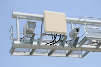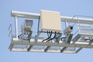 These systems are the most conventional. They consist of two parts, a radar dish and high speed camera to snap license plate photos. They are usually found on highways, suspended on metal arches overhead.